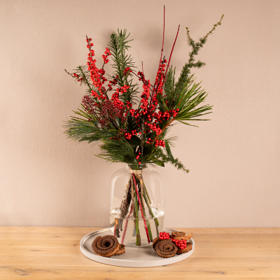 Herfstboeket bloemen met bessen
